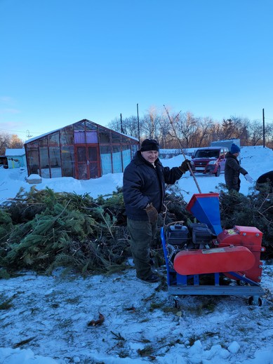 В процессе переработки елок участвовали Александр Гаврилов, Екатерина Гаврилова и волонтеры отряда «Помогаторы».