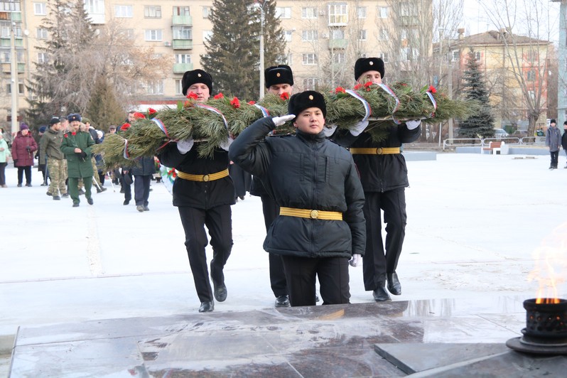 Присутствующие почтили память погибших минутой молчания. Под звуки торжественной музыки состоялось шествие, участники которого возложили к Вечному огню гирлянду из ели, венок и цветы.