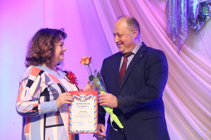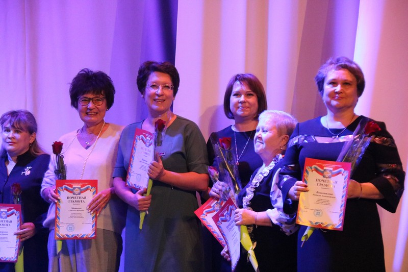 За значительные успехи в организации и совершенствовании образовательного процесса, добросовестный труд, высокие профессиональные достижения и в связи с Днем учителя Вадим Каримов вручил почётные грамоты Собрания депутатов педагогам школ, учреждений дополнительного образования, воспитателям и работникам детских садов. На сцену были приглашены 42 человека.