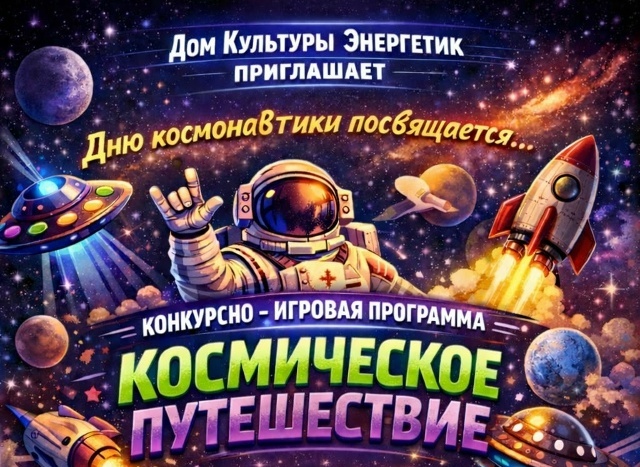 В посёлке Новогорный в ДК «Энергетик» 10 апреля пройдёт конкурсно-игровая программа для молодёжи «Космическое путешествие».