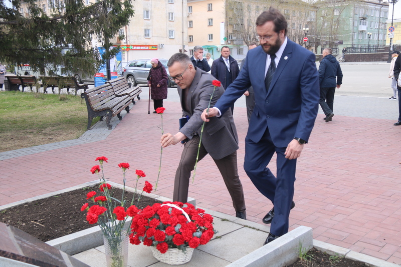 Символично, что мероприятие было организовано там, где установлен мемориальный камень в честь Б.В. Броховича и памятник первопроходцам ядерного производства – стела с бегущим Прометеем.