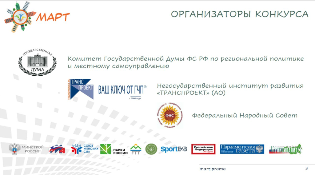 Конкурс объектов социальной инфраструктуры «МАРТ», направленный на выявление лучших практик сохранения и укрепления традиционных ценностей в субъектах и муниципальных образованиях Российской Федерации