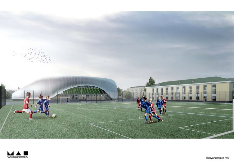 – Само здание, на наш взгляд, будет выглядеть оригинально и нестандартно и станет особенным объектом для города. Кроме того, предлагается вокруг ледовой арены, как основного строения, организовать комплекс открытых площадок: многофункциональную спортивную площадку, которая летом может использоваться для мини-футбола, волейбола, баскетбола, а зимой для хоккея или просто, как открытый каток; тренажёрную площадку и площадку для детей, парковку, газоны и всё необходимое благоустройство.