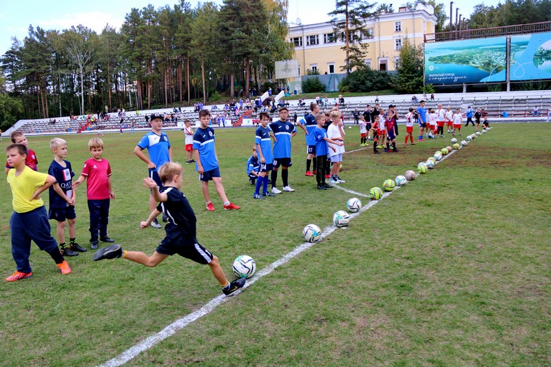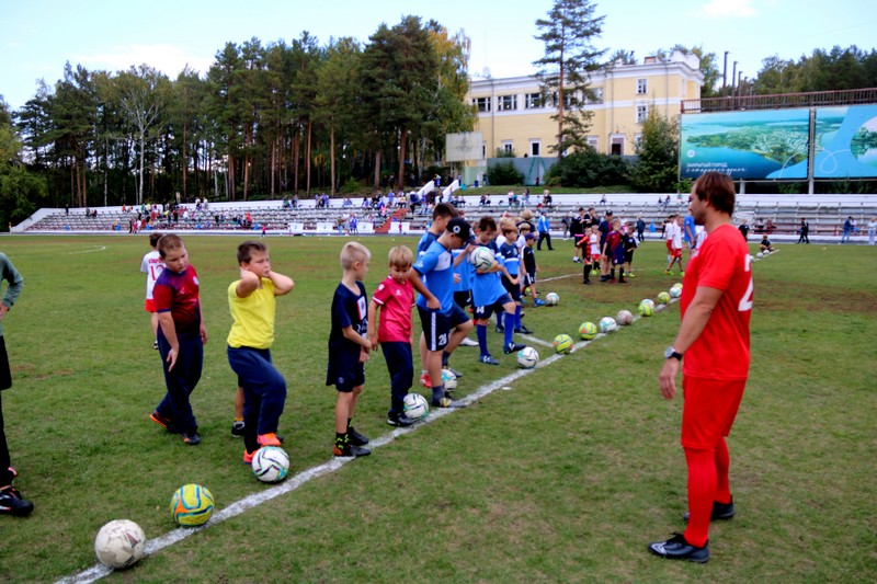 На стадионе «Труд» известные футболисты Дмитрий Сычев, Алексей Прудников и Сергей Горлукович делились секретами игры с юными озерскими спортсменами.