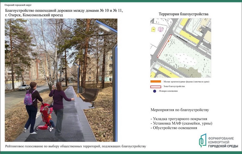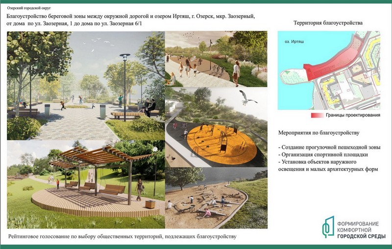 Жителям Озерского городского округа предстоит выбрать три объекта-победителя, которые будут благоустроены в первоочередном порядке в рамках Федерального проекта «Формирование комфортной городской среды», нацпроекту «Жилье и городская среда», инициированному Президентом России Владимиром Путиным.