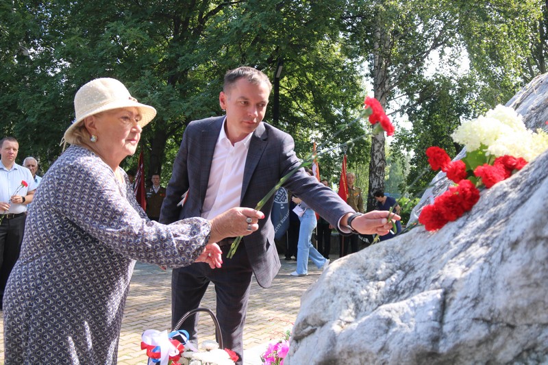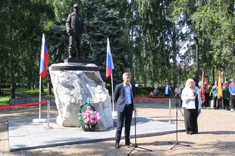 В память о Первостроителях была объявлена минута молчания, участники торжества возложили цветы к памятнику.