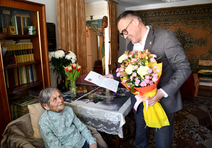- От лица всех жителей округа выражаю Вам искреннюю благодарность за Ваш многолетний труд, восхищаюсь Вашим долголетием, желаю крепкого здоровья и благополучия, - с самыми теплыми словами Вадим Каримов обратился к Лидии Дмитриевне, а двум ее дочерям, которые находились рядом, предложил содействие в решении насущных проблем.