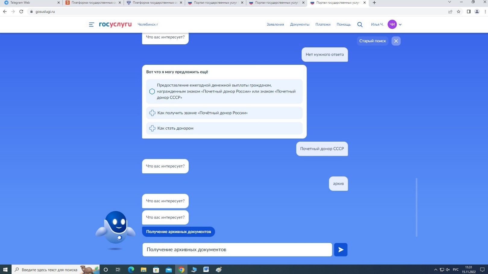 Далее в поиске выбираем вариант: Получение архивных документов.
