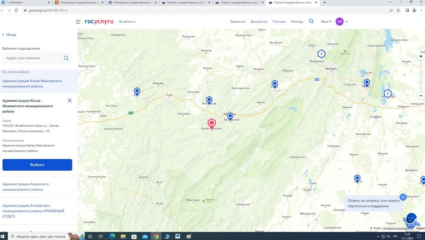 Следующим шагом будет выбор подразделения «Муниципальный архив Озерского городского округа».
