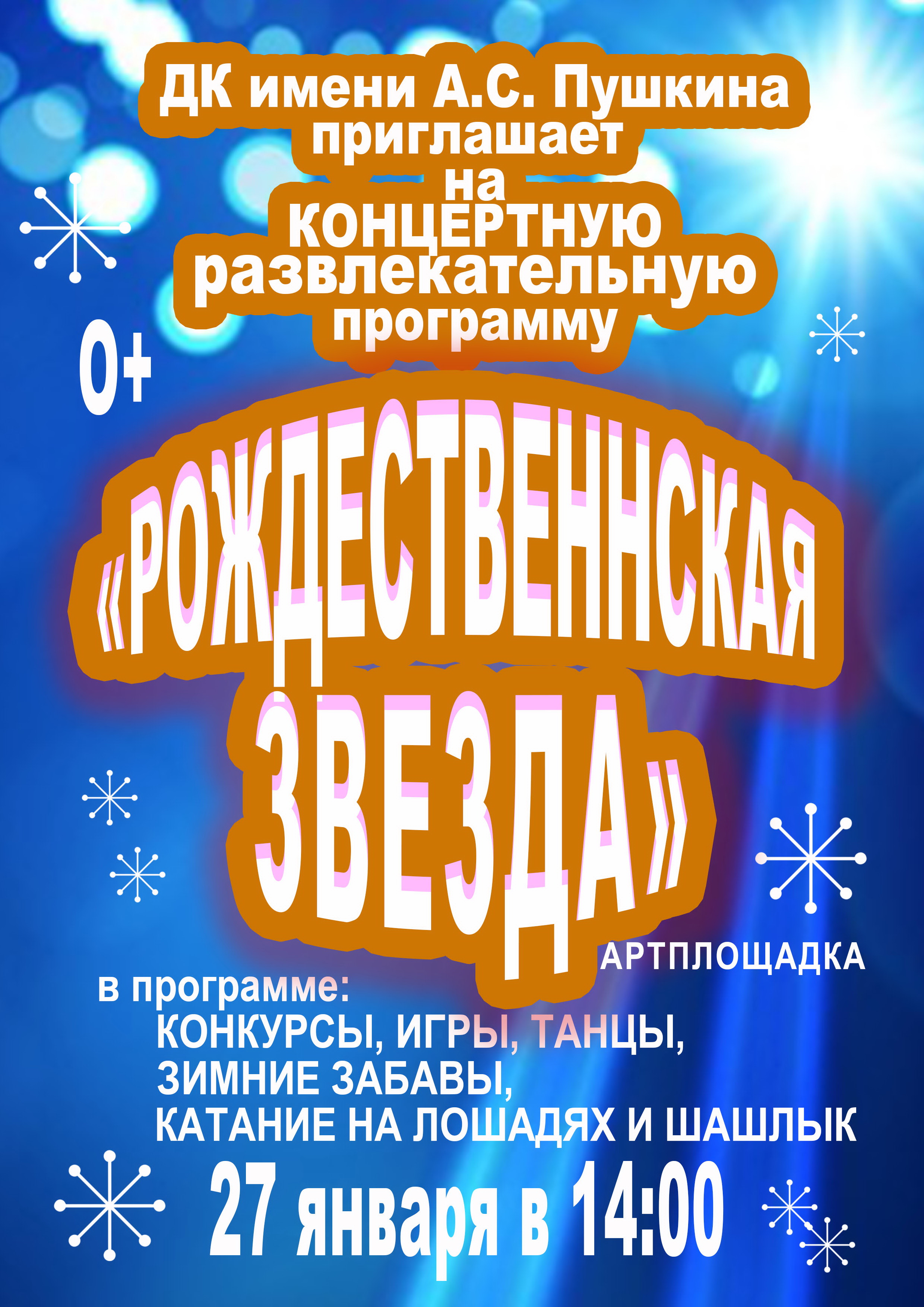 ДК им. А.С. Пушкина приглашает жителей округа принять участие в развлекательной программе "Рождественская звезда"
