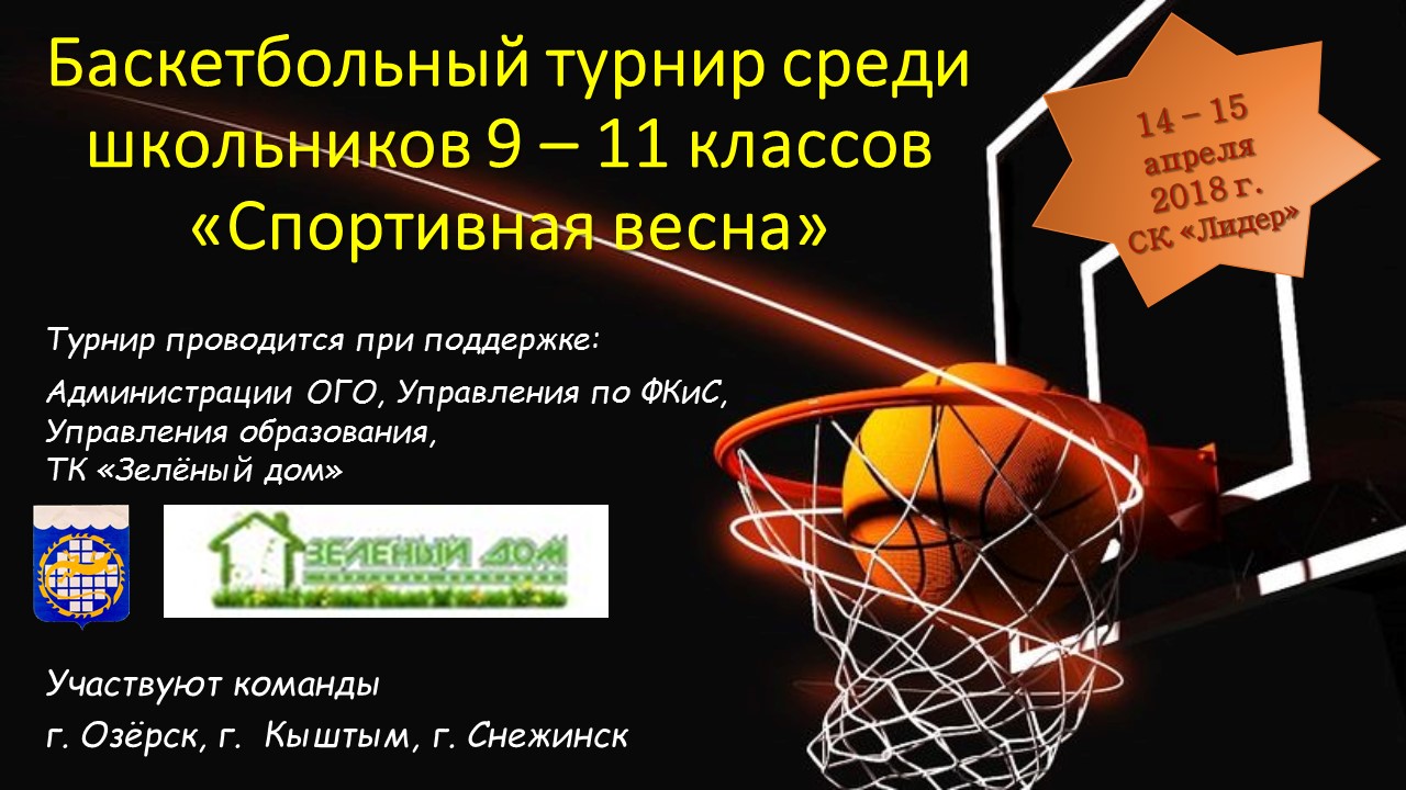 14-15 апреля баскетбольный турнир среди 9-11 классов "Спортивная весна"
