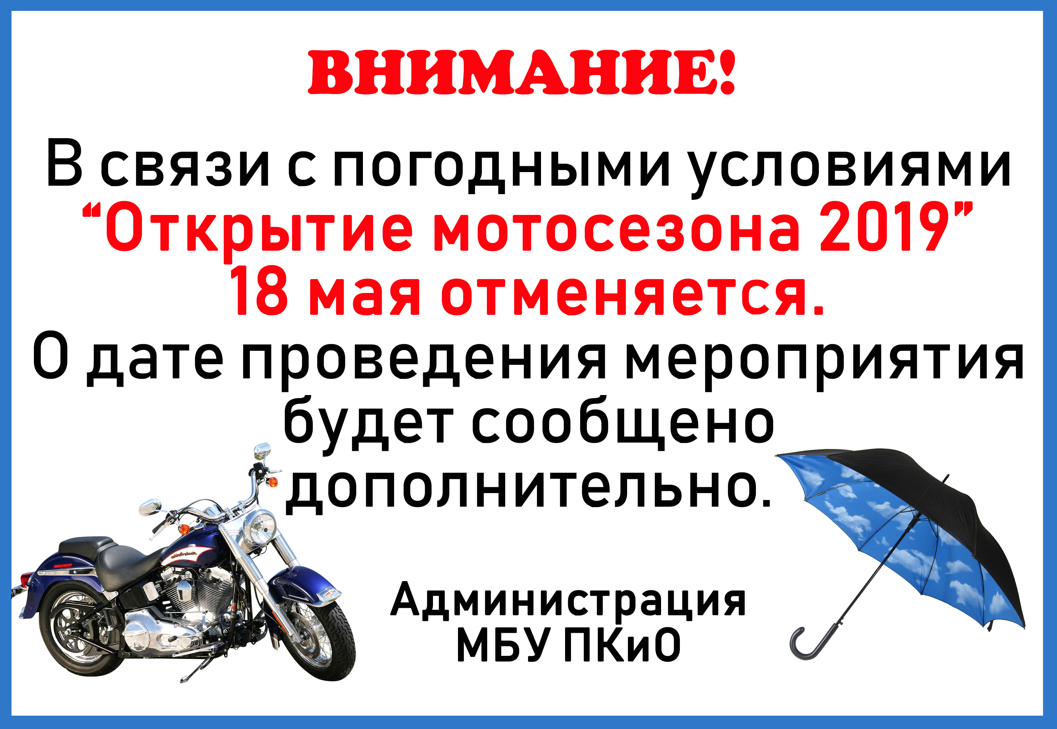 В связи с погодными условиями "Открытие мотосезона 2019" 18 мая отменяется