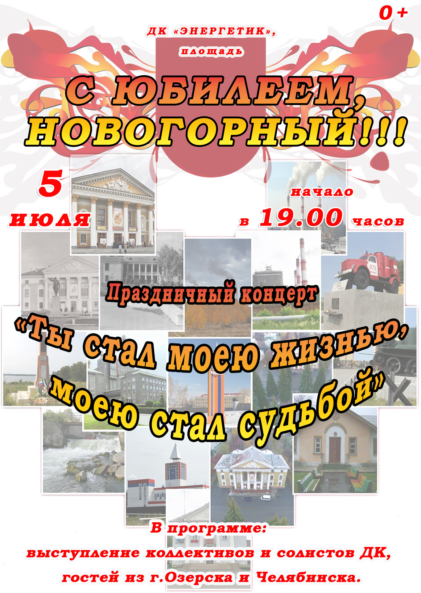 5 июля на площади перед Домом культуры «Энергетик» состоится праздничный концерт, посвященный 65 – летнему юбилею поселка Новогорный.