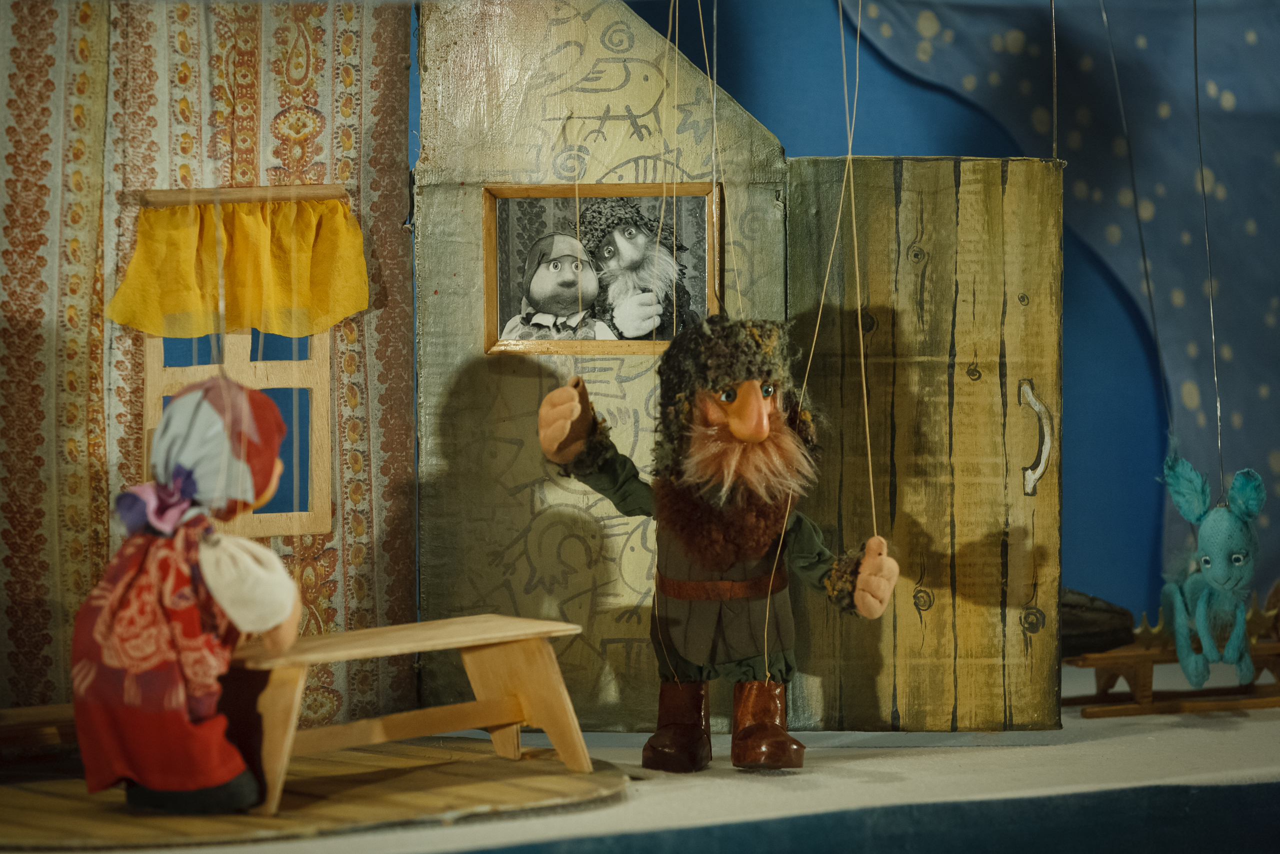 Территория волшебной коробки, где происходит действие - примерно два письменных стола. И на этом маленьком пространстве пять актеров (которых мы не видим) филигранно оживляют крохотных персонажей сказки. Штоковые марионетки, подвижные и забавные, каждый сказочный герой - со своим точно воплощенным характером.