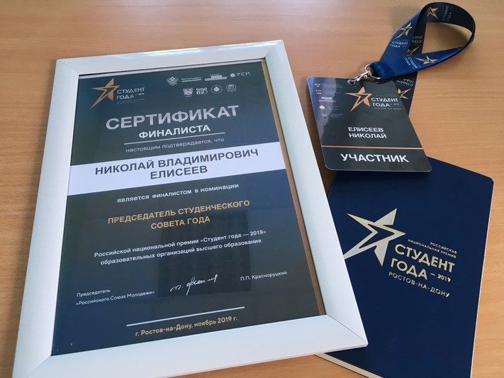 С 14-18 ноября в городе Ростов-на-Дону прошел финал Всероссийской национальной премии «Студент года - 2019», в котором приняли участие 600 студентов из 55 субъектов Российской Федерации. За звание лучшего студента и студенческого объединения года боролись 270 участников в индивидуальных номинациях и 95 студенческих объединений российских вузов.