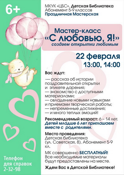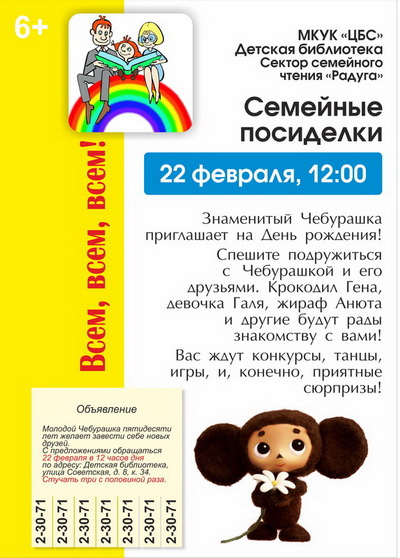 Детская библиотека приглашает на мастер-классы и встречу с Чебурашкой