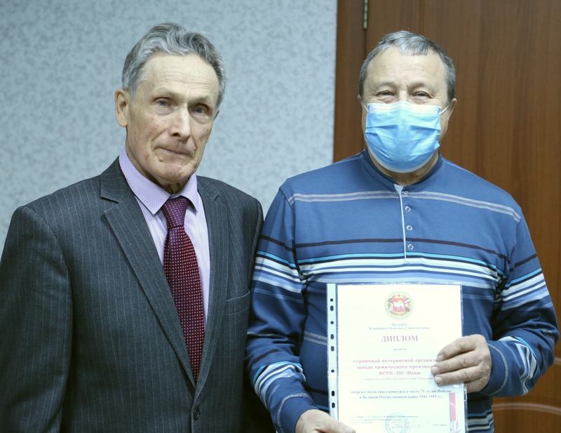 За высокие показатели в конкурсе, посвященном 75-летию Великой Победы, президиумом областного Совета ветеранов признана победителем ветеранская организация поселка Новогорный (председатель – Л.И. Чернова). Дипломами также награждены ветеранские организации Южно-Уральского управления строительства (председатель – Н.А. Шейко), детских дошкольных учреждений управления образования (председатель – С.Н. Морогова), микрорайона №5 (председатель – В.И. Афтахова), Озерского технического колледжа (председатель – Л.К. Якимова), химического завода ФГУП «ПО «Маяк» (председатель – С.Р. Багаутдингов).