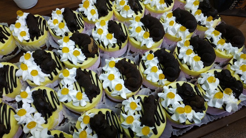 Для участников открытия организаторами выставки был приготовлен интересный сюрприз – пирожные с шоколадными фигурками собак, изготовленными вручную Марией Пилюгиной! Угощение стало ещё одной маленькой выставкой.