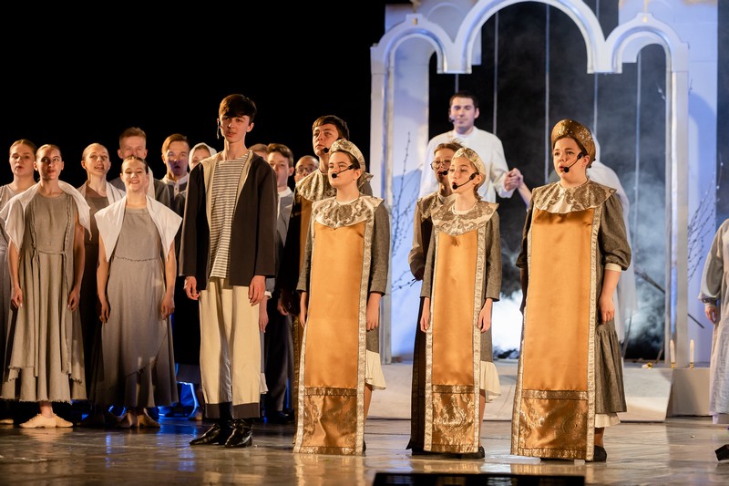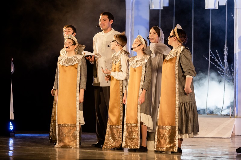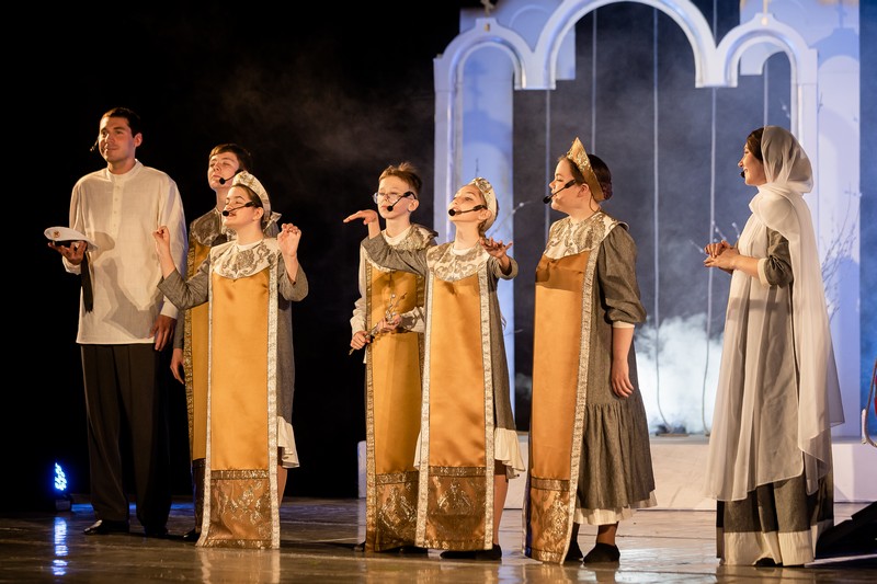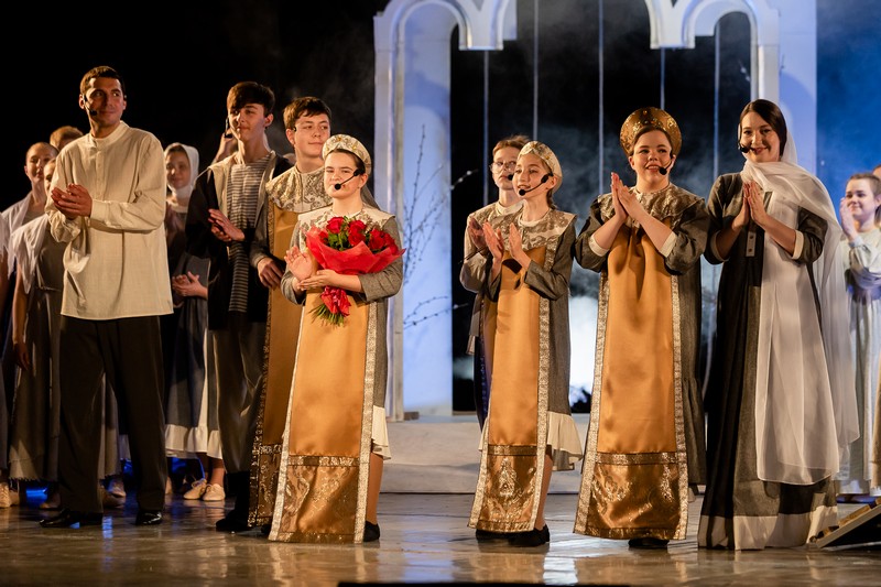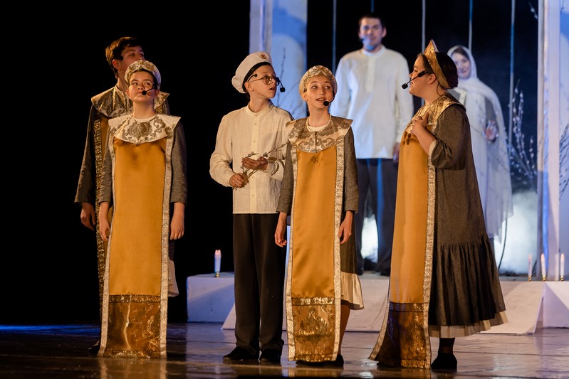 В спектакле, созданном по произведению протоирея Николая Агафонова «Про колокол Бим-Бим», приняли участие более 80 ребят в возрасте от 8 до 15 лет. Они самостоятельно изготовили декорации и костюмы, а также продумали музыкальное оформление постановки.