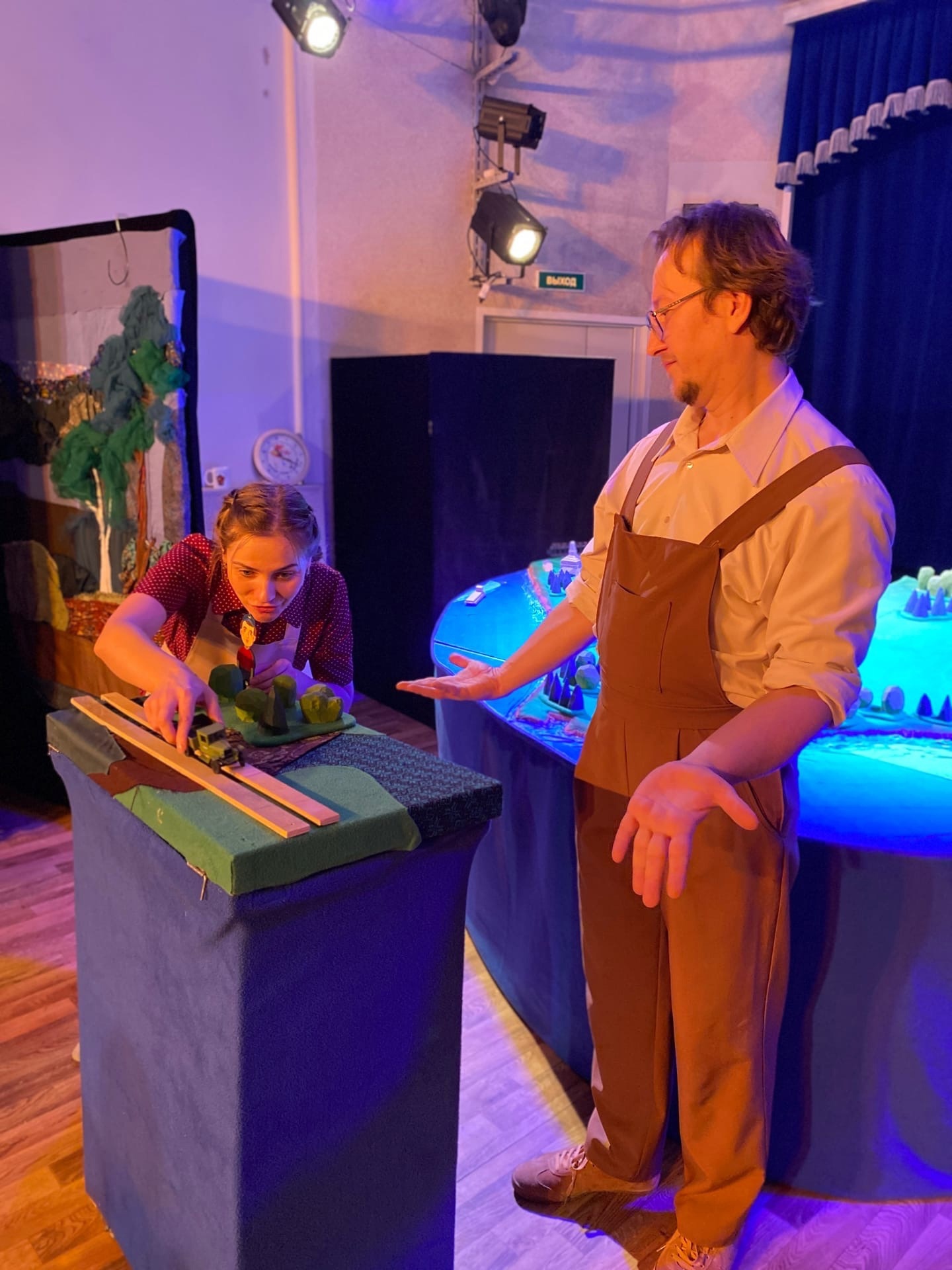 Сосновый бор. Влюбились в этот маленький, уютный город! И в театр кукол «Волшебный фонарь», где гастролеров из Озерска встретила замечательная профессиональная команда во главе с директором Еленой Певцовой. То, с каким интересом, вдумчиво и с горящими глазами воспринимали спектакль юные зрители, во многом их заслуга. Воспитанный, влюбленный в театр зритель дорогого стоит. Планировали показать Вовку дважды по 50 человек, но реалии пандемии диктуют свои правила. Пришлось отыграть «Вовку из Сороковки» четыре раза вместо запланированных двух показов. Для такого зрителя, как в Сосновом бору, можно играть бесконечно. Да что там дети, сами служители театра смотрели спектакль все четыре раза, и каждый раз находили что-то новое в живой импровизации Дмитрия Ерохина и Алены Захарчук.