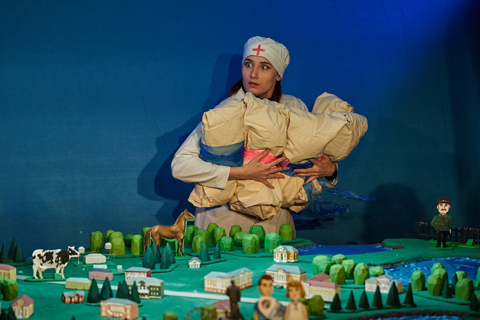 Готовили спектакль «Вовка из Сороковки» почти весь 2020-й, первой волны ковида, год. В условиях изоляции, то бишь в собственной квартире, вырезали точные копии городских зданий и памятников, оформляли декорации, шили костюмы. Общий перечень костюмов, декораций и реквизита к спектаклю составляет 202 предмета. Спектакль-рекордсмен, уже по этому параметру достойный книги рекордов Гиннеса.