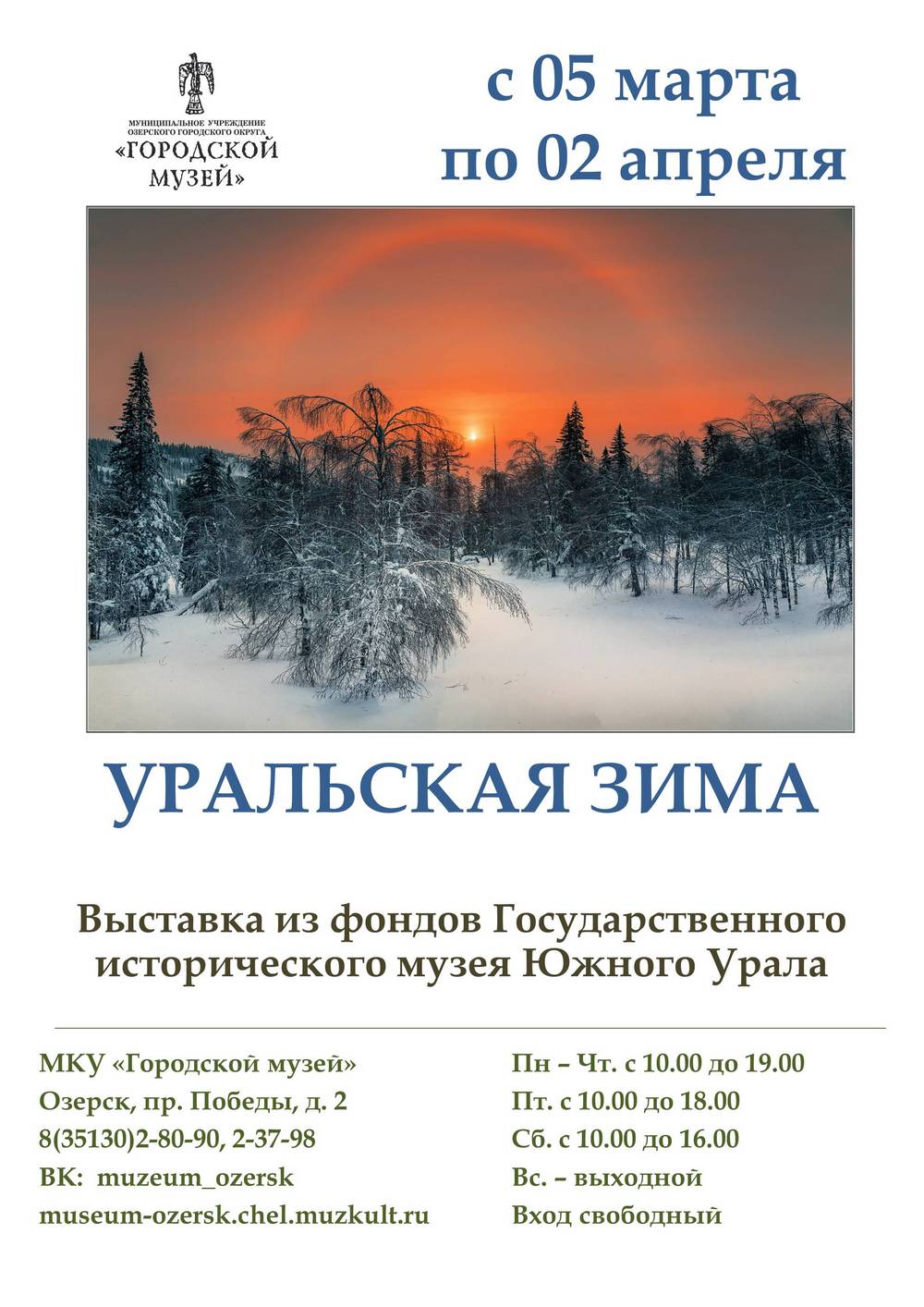 В начале весны вспоминаем зиму – в субботу 5 марта в 12:00 часов в Озерском городском музее открывается новая фотовыставка из фондов Государственного исторического музея Южного Урала «Уральская зима».