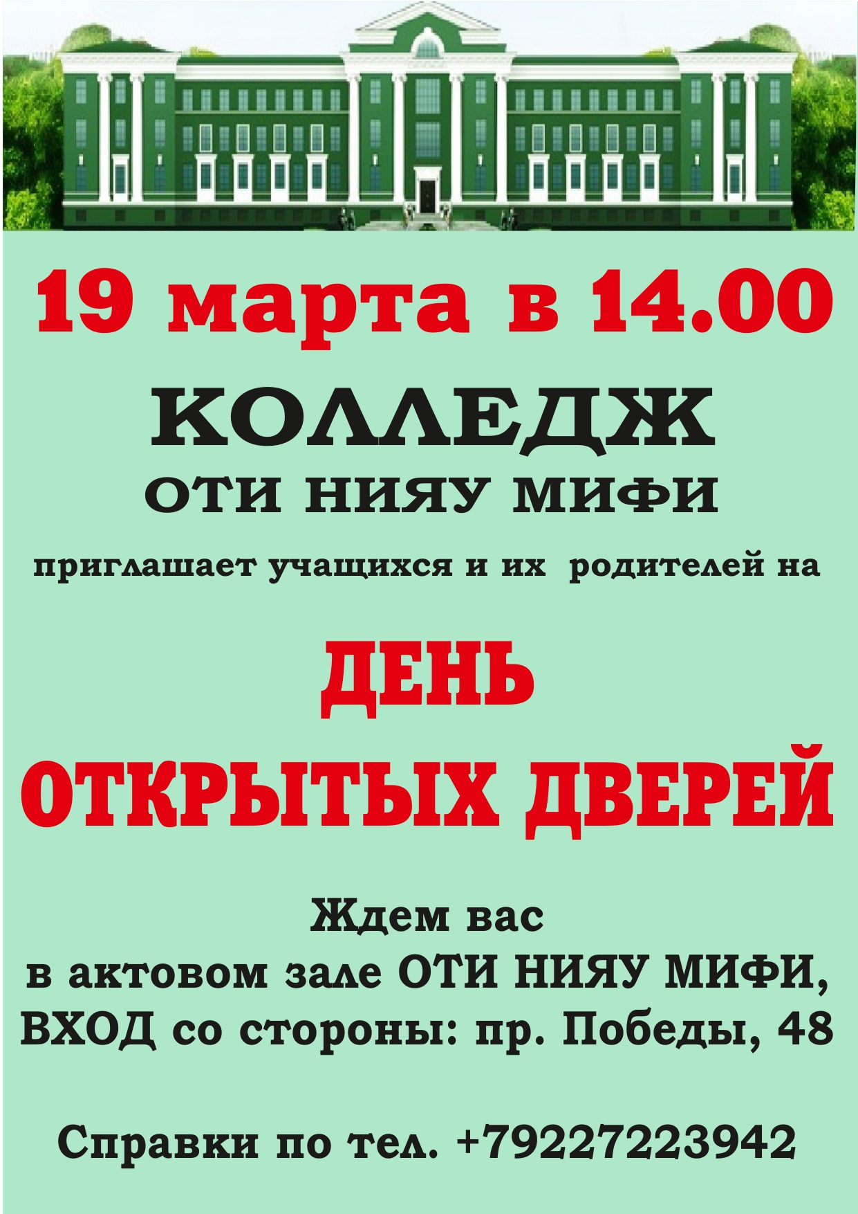 Колледж ОТИ НИЯУ МИФИ проводит День открытых дверей