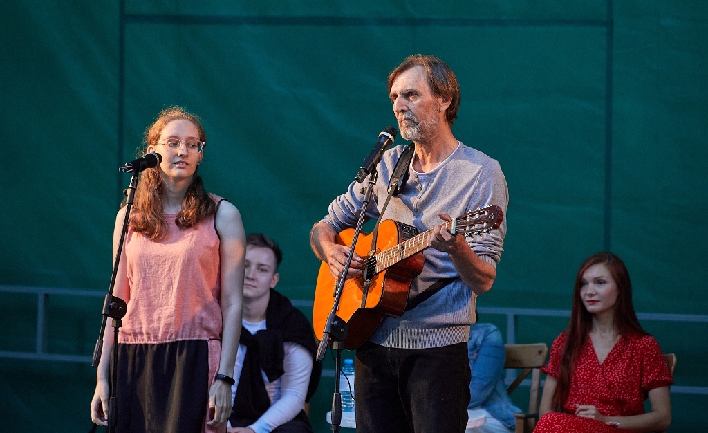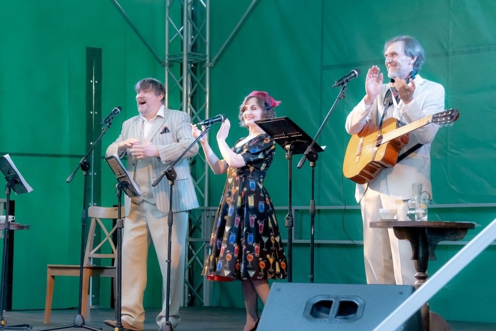 В субботу в бард-концерте заливались соловьями маститые и начинающие актеры «Нашего дома». Воскресным утром под аплодисменты зрителей распевали герои сказки «Давай дружить, Ромашка!», в том числе дебютантка Софа Воронкова. Красивую точку в песенном марафоне выходных поставило легендарное трио «Трое» с популярной программой «В парке Чаир».
