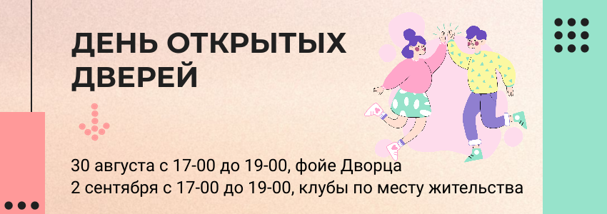 30 августа, с 17:00 до 19:00 все желающие смогут узнать, в какие творческие коллективы и спортивные объединения открыт приём детей на новый учебный год, смогут познакомиться с педагогами и записаться в коллективы.