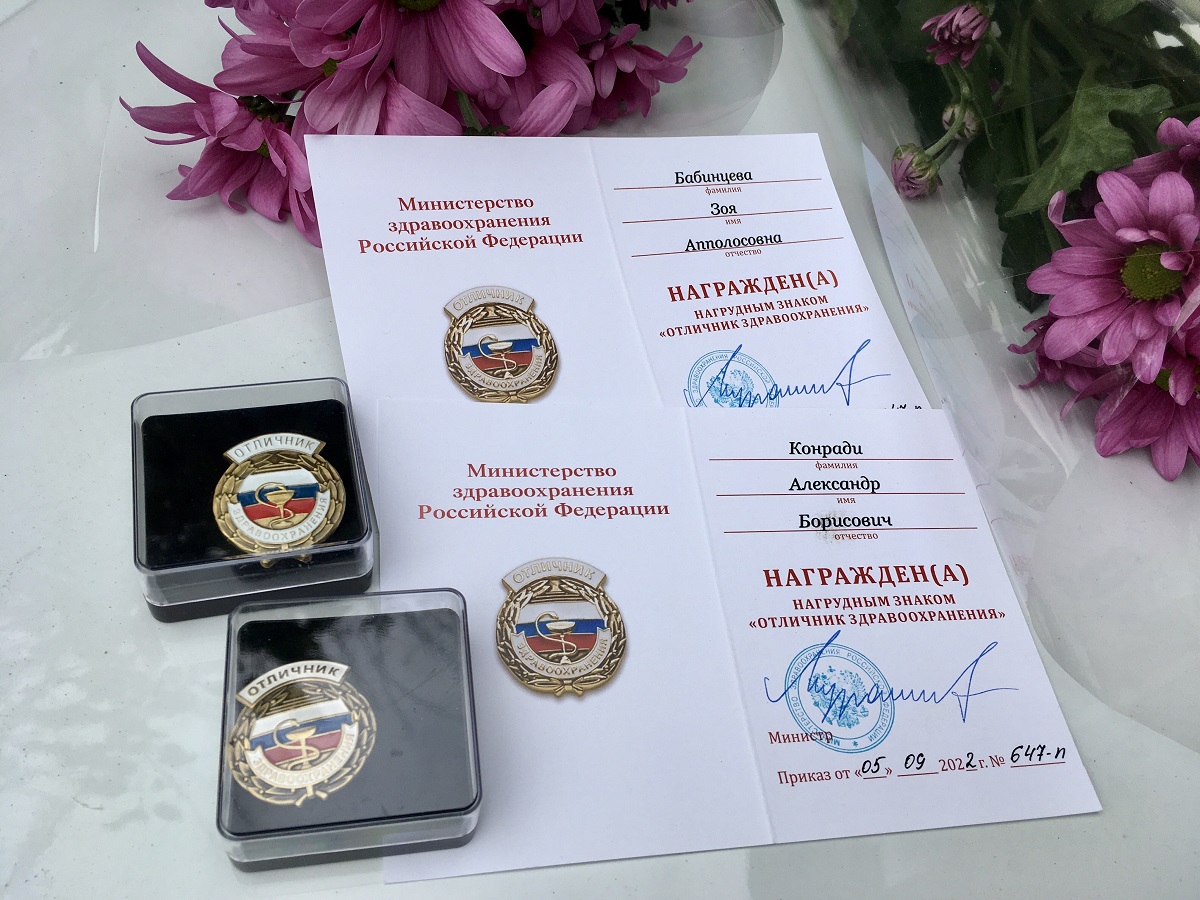 Приказом Министерства здравоохранения РФ нагрудного знака «Отличник здравоохранения РФ» удостоены врач-фтизиатр ФГБУЗ КБ №71 ФМБА России Зоя Бабинцева и врач – анестезиолог-реаниматолог высшей категории, кандидат медицинских наук Александр Конради.