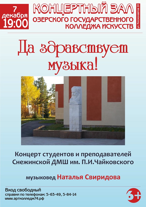 В Озерске состоится концерт студентов и преподавателей Снежинской детской музыккльной школы им. П.И. Чайковского