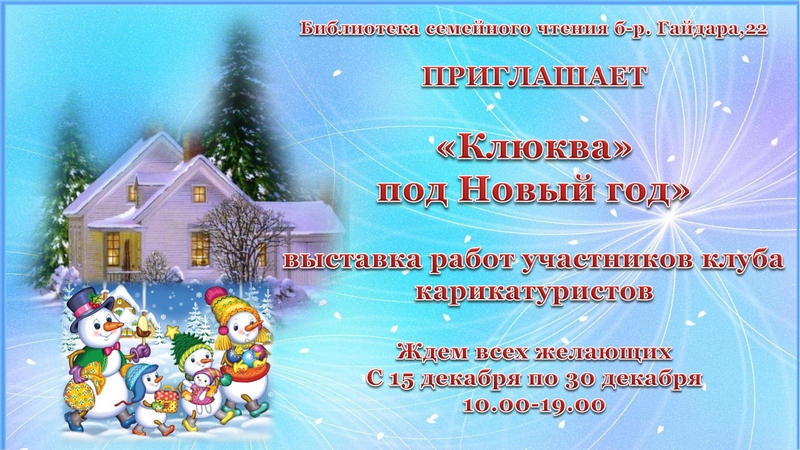 Все желающие могут посетить выставку с 15 по 30 декабря в библиотеке по адресу б-р. Гайдара,22, в рабочие дни с 10:00 до 19:00 часов и по субботам с 10:00 до 18:00 часов.