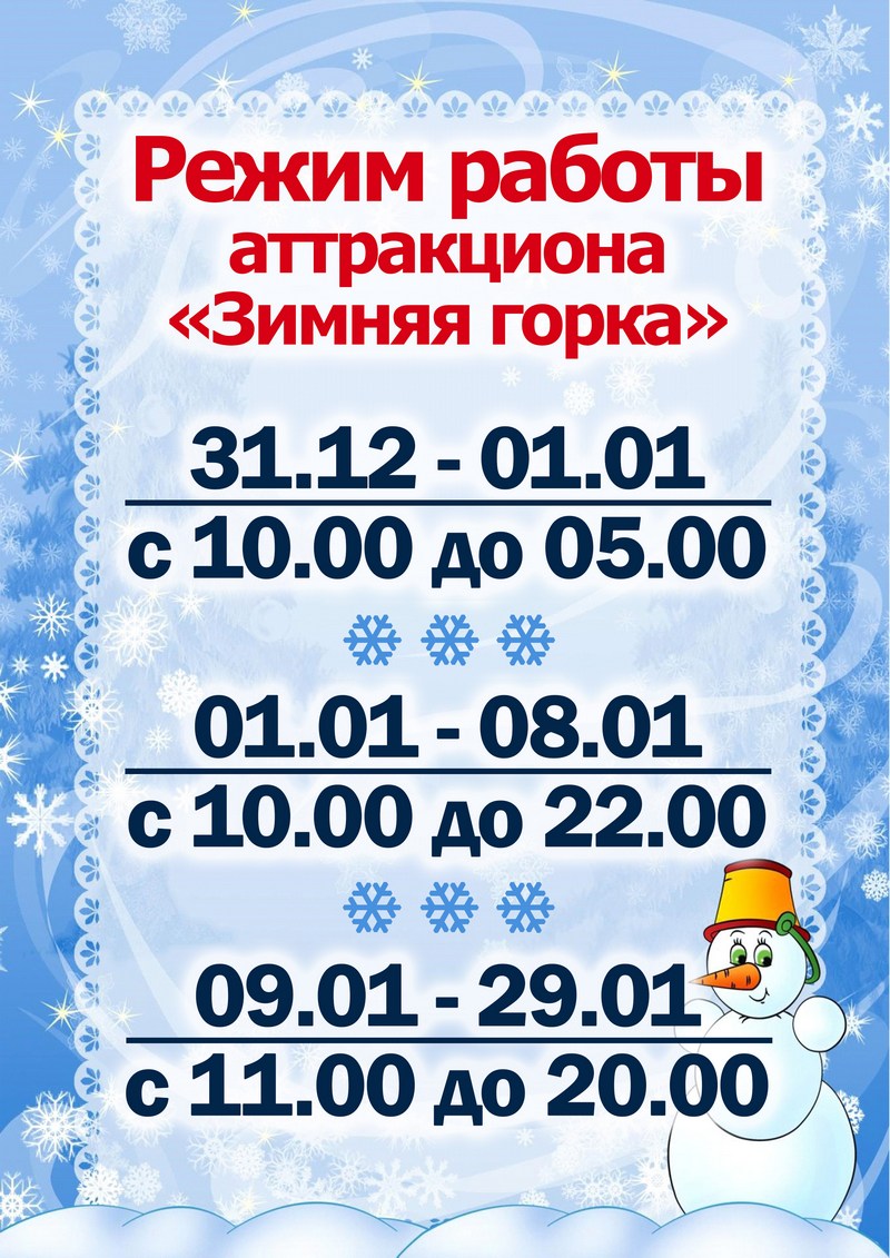 График работы горки в ледовом городке на проспекте К.Маркса
