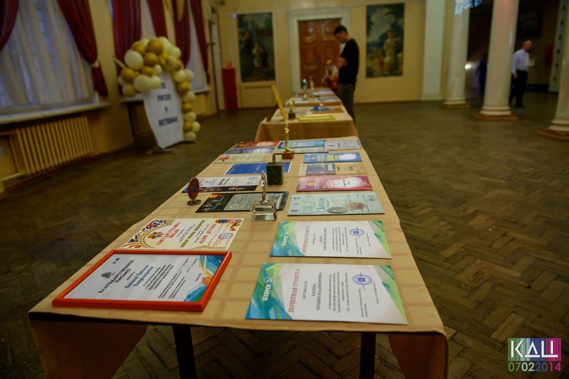 В фойе была оформлена выставка ведомственных наград: благодарностей, почетных грамот, кубков, принадлежащих педагогам и руководителям детских учреждений поселка.
