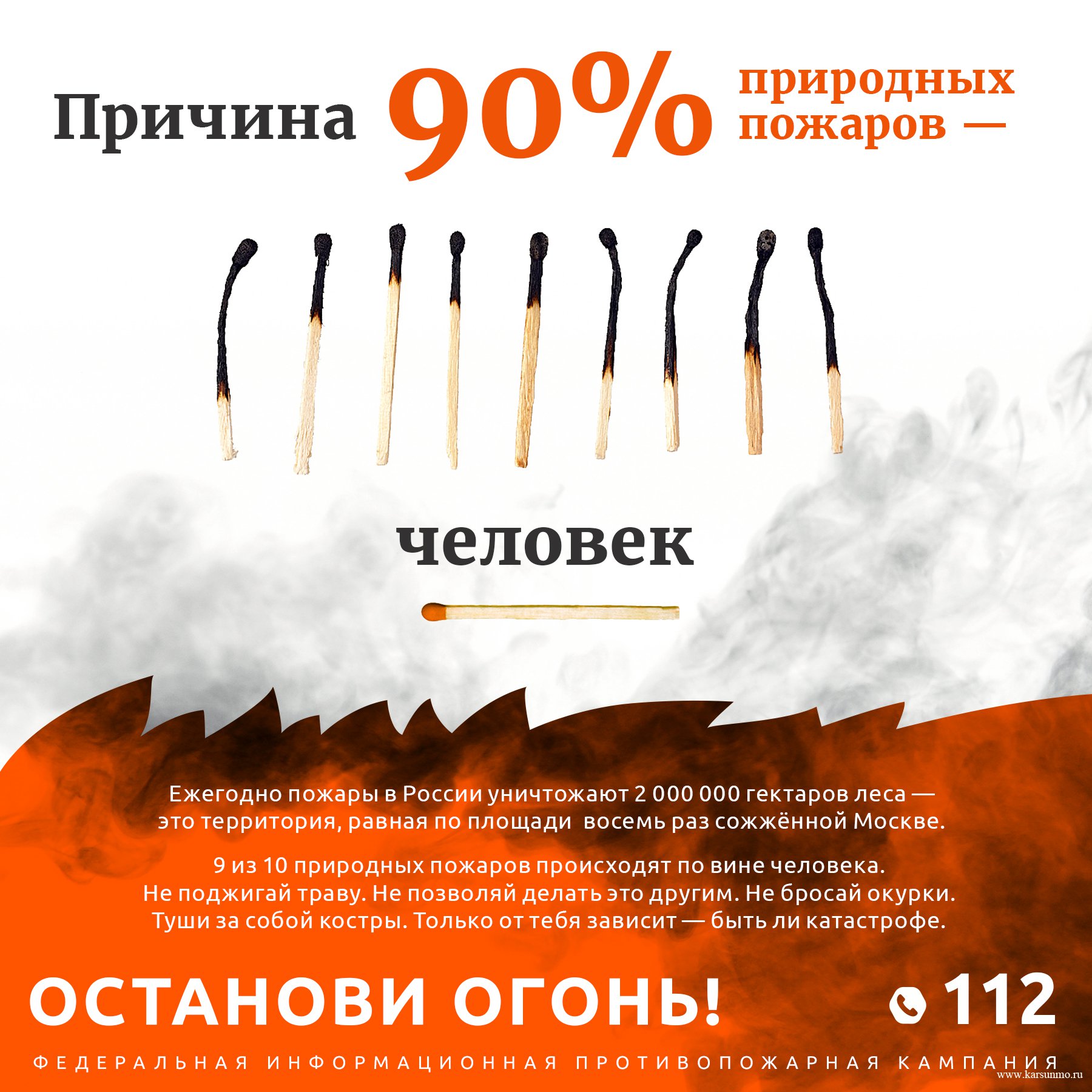 Весна считается самым пожароопасным сезоном, когда только сошел снег, осталась прошлогодняя сухая трава, а зеленая еще не выросла. В этот период пожар может возникнуть из-за любой оплошности, из-за брошенного непотушенного окурка, из-за битого стекла, нагретого солнцем, из-за специального выжигания сухой травы и бесконтрольного сжигания мусора при уборке территорий!