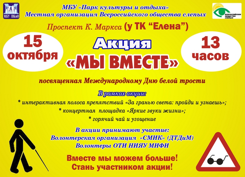 В парке культуры и отдыха состоится акция "Мы вместе", посвященная Международному дню белой трости