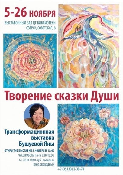 5 ноября, в 15:00 в выставочном зале Центральной городской библиотеки состоится открытие персональной выставки Яны Бушуевой "Творение сказки души".