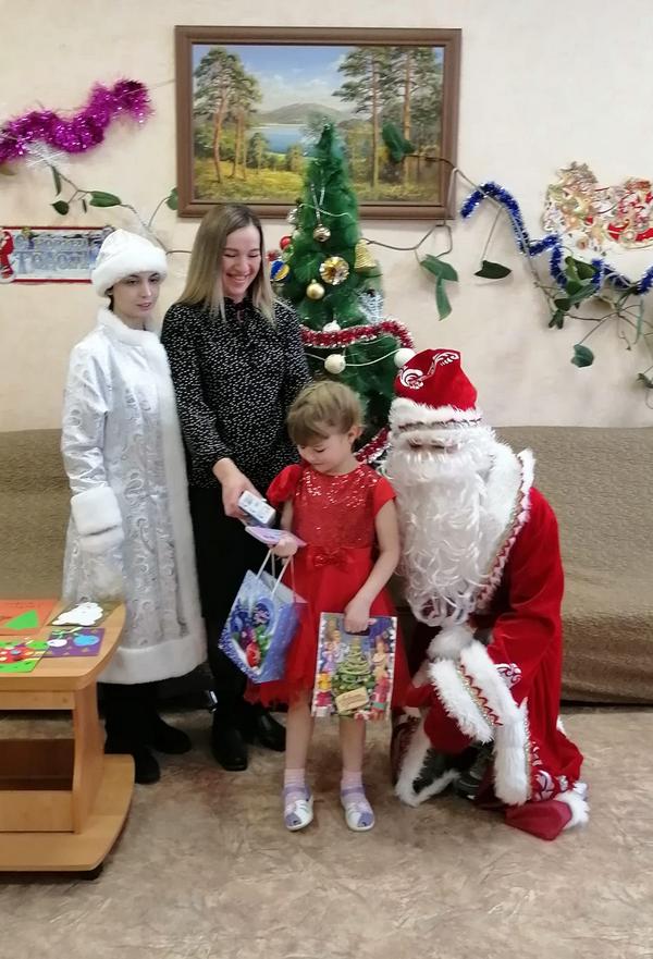 Сотрудники этих организаций поздравили и вручили подарки Вике (6 лет), Егору (6 лет), и Ивану (7 лет). В роли Деда Мороза и Снегурочки выступили участники студенческого строительного отряда "Братство" г.Озерска.