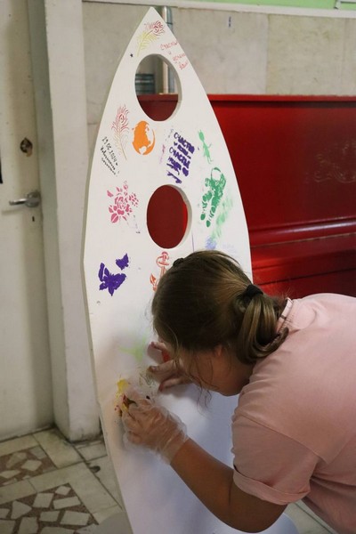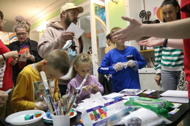 За окном бушевала стихия, ветер и дождь, а в Центре, в прямом смысле слова, было здорово, царила доброжелательная и лёгкая атмосфера, когда всем друг с другом интересно, все знакомы и рады новой встрече. Не было границ, зрители легко и непринуждённо становились участниками творческих площадок, а те, кто уже заполнил маршрутные листы для участия в розыгрыше призов, проходили в зрительный зал. Юные артисты, только что участвовавшие в творческих активностях, выступали на сцене, а через несколько минут уже поддерживали аплодисментами тех, кто только что поднялся на неё, чтобы станцевать или, например, сыграть на саксофоне.