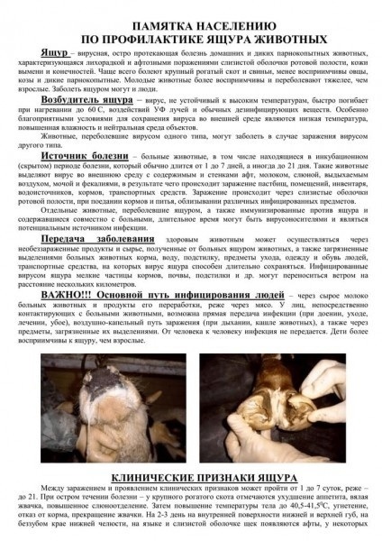 Памятки об особо опасных болезнях животных