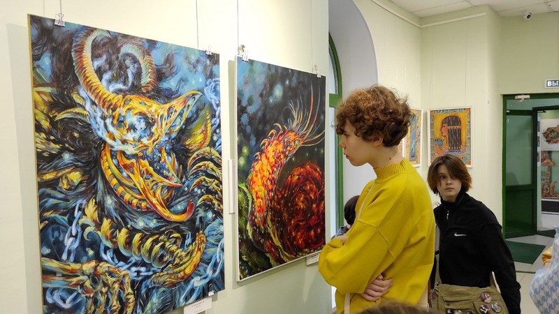 Старшее поколение преподавателей на открытии выставки представили Людмила Маюрова и Юрий Подзоров, молодую часть педагогического коллектива - Алексей Стрельчик.