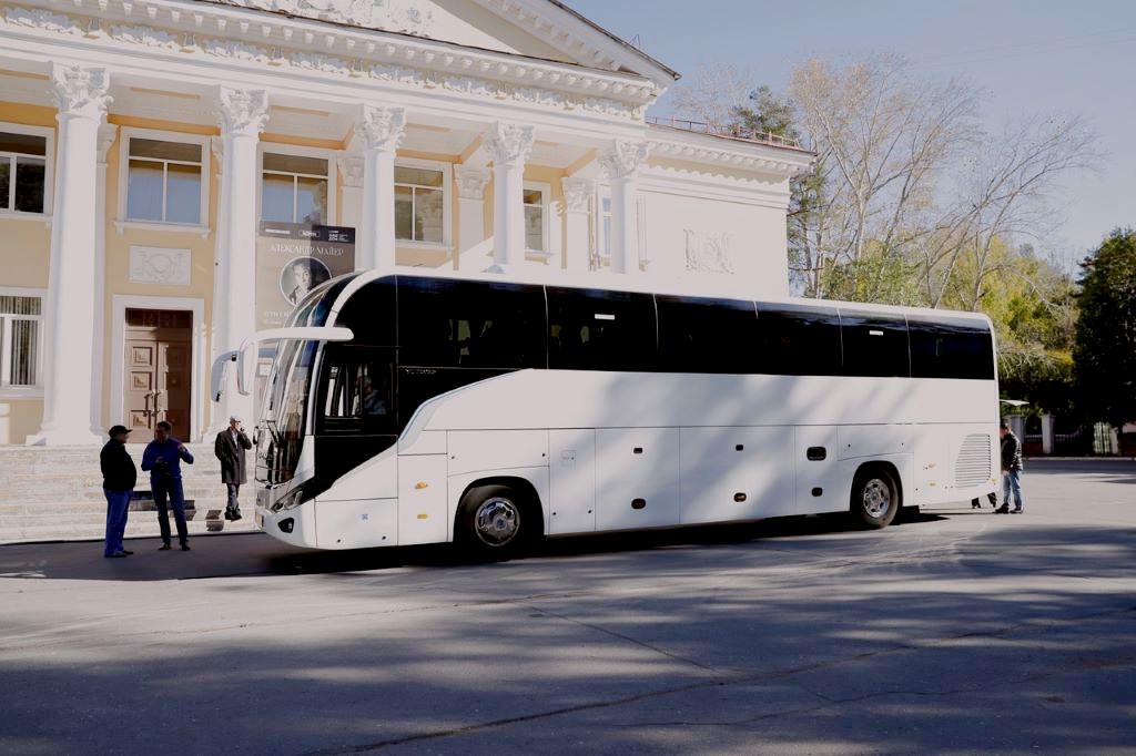 Артисты и сотрудники уже оценили новый автобус и сфотографировались на память на фоне театра. Еще раз благодарим градообразующее предприятие ФГУП ПО "МАЯК", которое предоставило средства на покупку автобуса Ютонг С12pro.