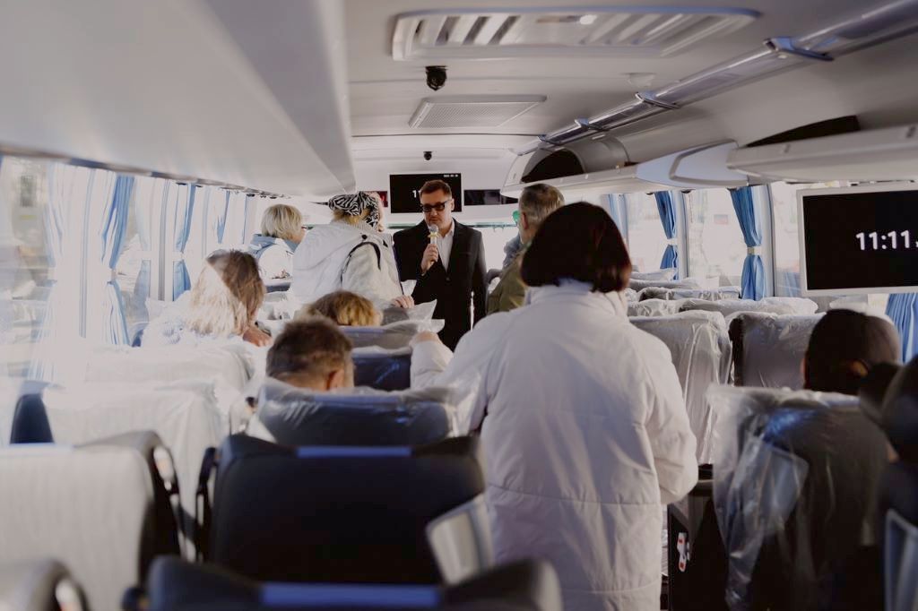 В транспортном средстве установлены кондиционер, телевизоры, тахограф, регулируемые спинки пассажирских кресел, трехточечные ремни безопасности, 53 посадочных места для пассажиров, зарядные устройства и другие полезные опции.
