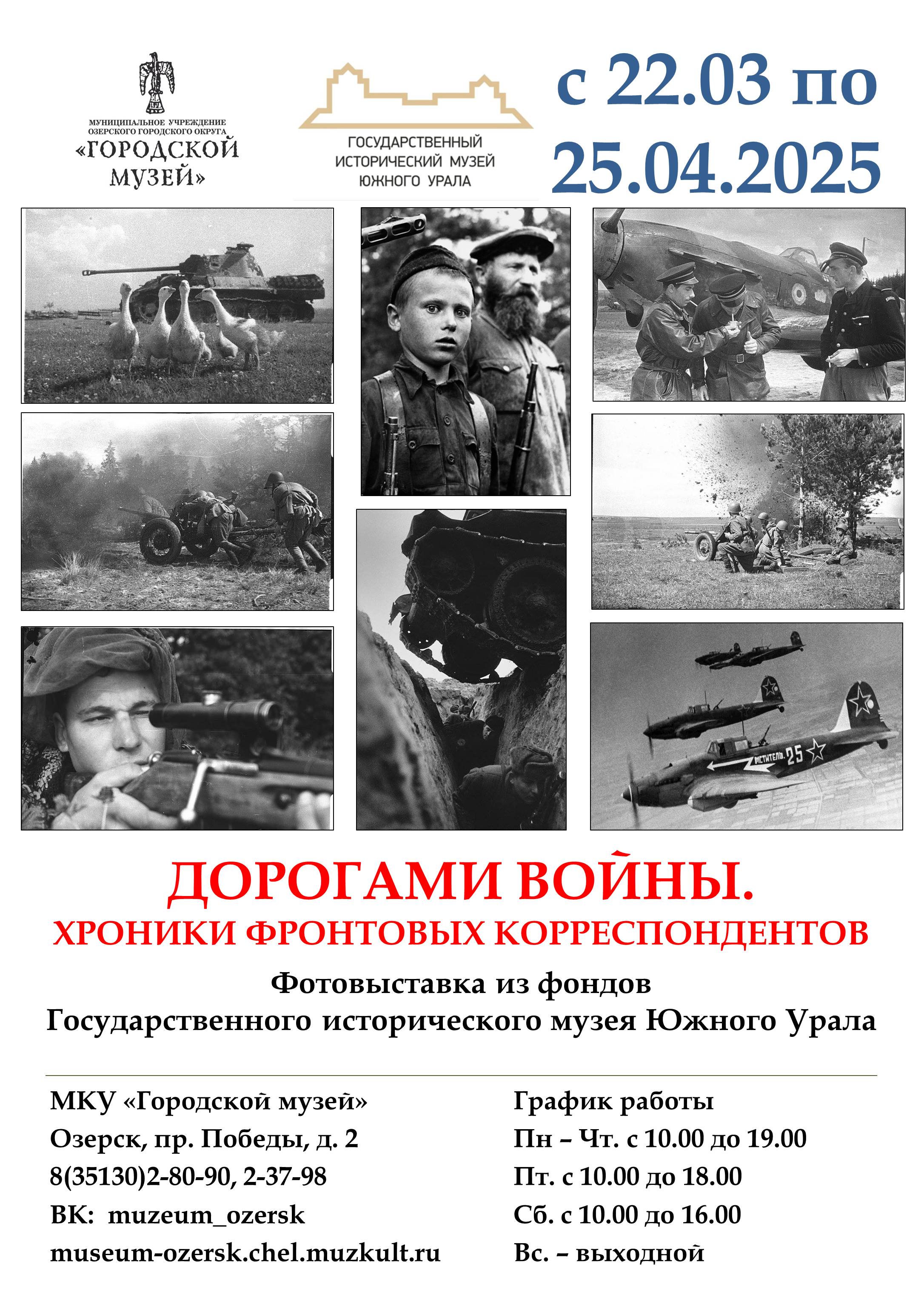 С 22 марта в Озерском городском музее будет проходить выставка исторической фотографии «Дорогами войны. Хроники фронтовых корреспондентов».
