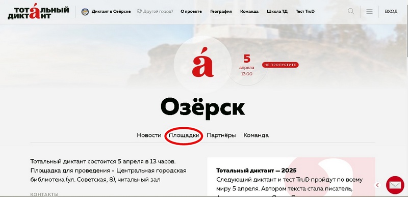 Приглашаем озерчан присоединиться к акции и написать диктант в читальном зале Центральной городской библиотеки.