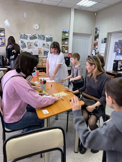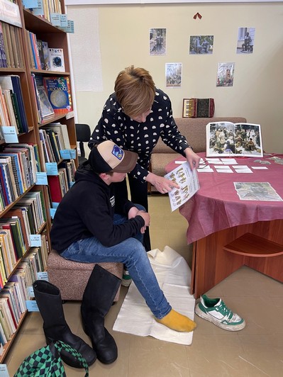 Знакомство с историей фронтовых судеб писателей подкреплялись для ребят разнообразными творческими заданиями. Так познакомившись с профессией фронтового корреспондента, наши юные гости создавали выпуск детской газеты, освоив некоторые правила стенографии, а потом попробовали выполнить логические задания, которые публиковались в военных номерах детского журнала «Мурзилка». Учились ребята и правильно оформлять письма полевой почты, выбирая фронтовые стихи Михалкова для отправки своему школьному другу.