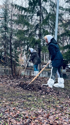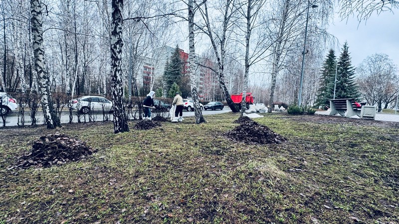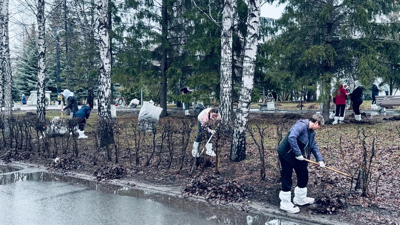 Вокруг дежурили спецавтомобили, чтобы сразу вывозить собранные мешки с прошлогодней листвой и мусором. Вскоре в сквере стало чисто и красиво, что сделает приятнее прогулки горожан на свежем воздухе.