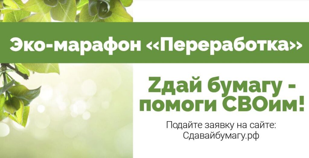 В рамках Всероссийского эко-марафона «Переработка» осенью 2025 года в Челябинской области планируется проведение акции под девизом: «Zдай бумагу помоги - СВОим» при поддержке краудфандинг проекта «Подари Дерево» www.подари-дерево.рф.