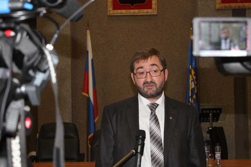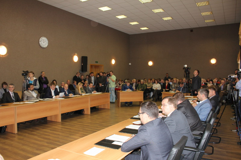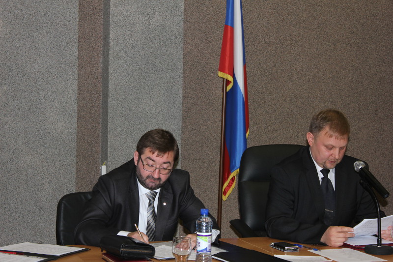 В начале сессии Александр Калинин огласил решение территориальной избирательной комиссии, в соответствии с которым, по результатам выборов, состоявшихся в округе 13 сентября, были зарегистрированы депутаты по 25 избирательным округам.