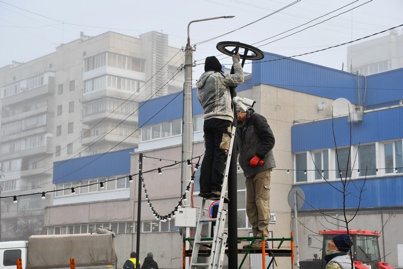 В настоящее время здесь уложено более четырех тысяч квадратных метров брусчатки, более тысячи квадратных метров асфальта, установлены все опоры наружного освещения, смонтирована гирлянда над пешеходной зоной.
